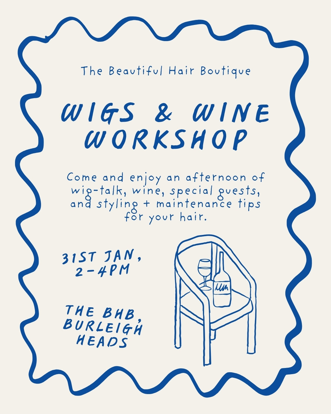 APPLY NOWWe're so excited to announce our very first Wigs & Wine Workshop on the 31st January at our gorgeous Burleigh Heads wig boutique on the Gold Coast, and you're all invited!
