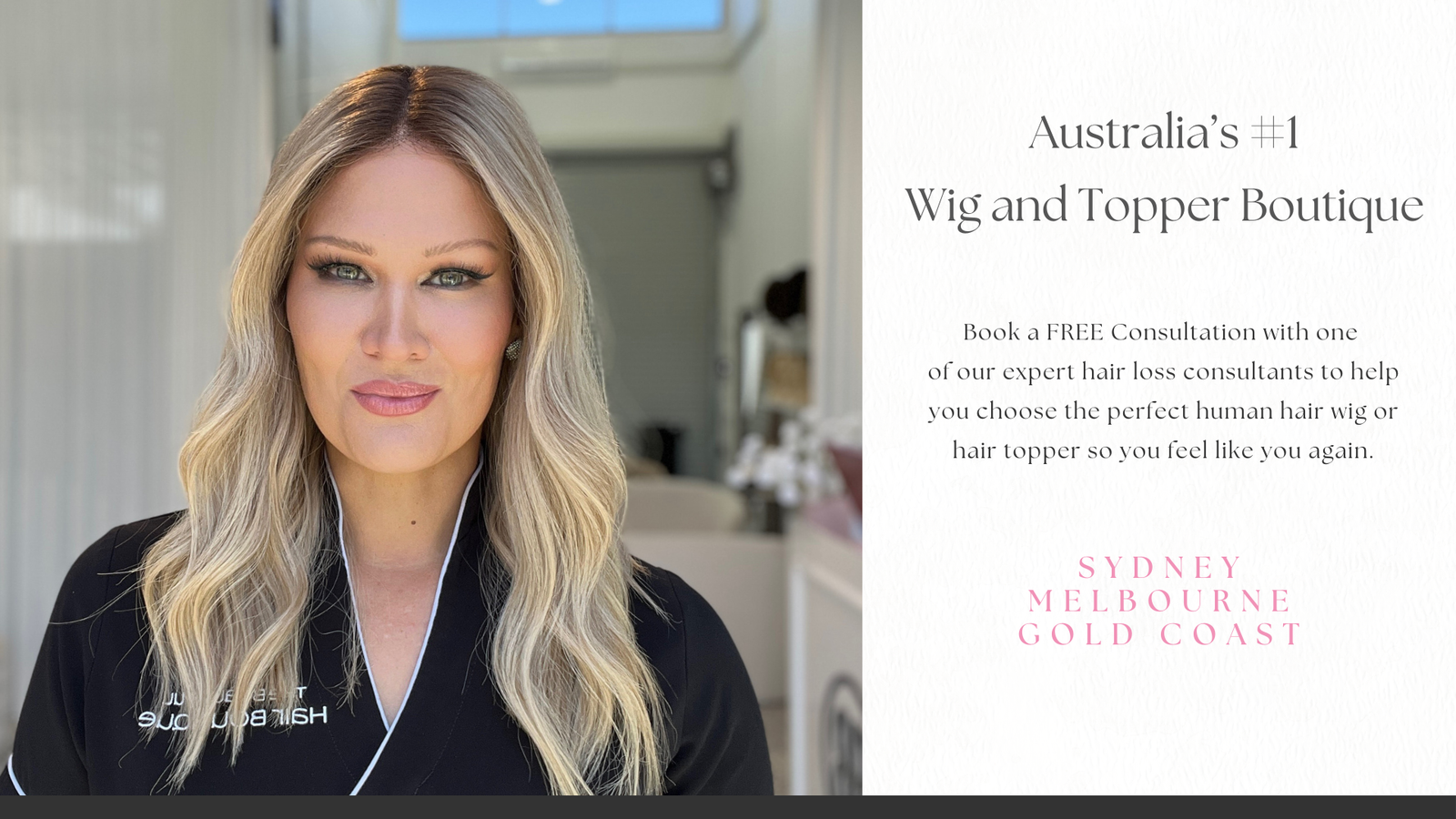 Located in Sydney, Melbourne and the Gold Coast, we offer complimentary in-person wig and topper consultations. We also offer video virtual consultations for those who are unable to travel to one of our stores or are located outside of Australia.
