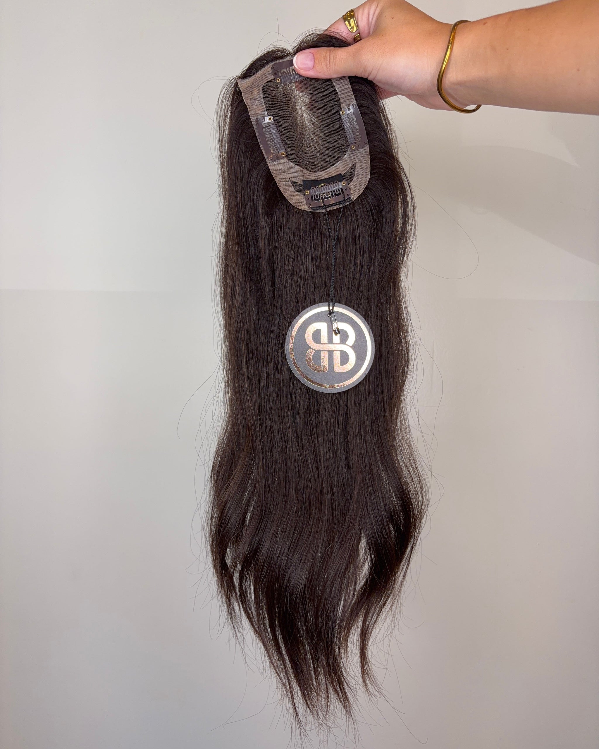 Our #1 BEST selling Premium Remy Human Hair MICRO Topper is made with our lightweight Swiss lace base and is available in 16" length. Perfect for women looking for a super light weight piece to blend in naturally with your own hair. Ideal for first time topper wearers and to cover hair loss on the crown or small patches of hair loss.